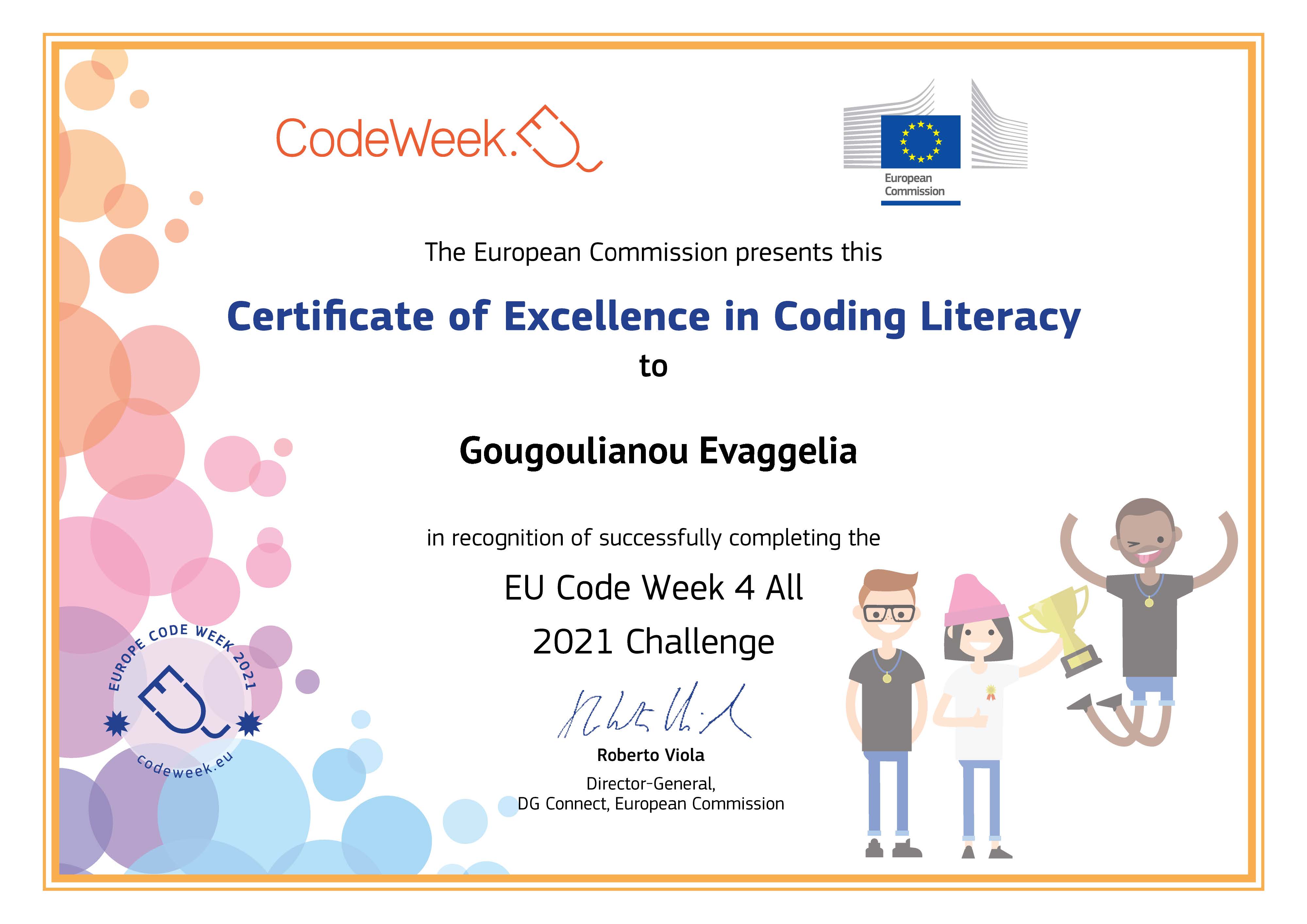 Πιστοποιητικό Αριστείας Europe Code Week 2021